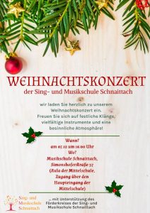 Die Sing- und Musikschule Schnaittach ist eine Einrichtung der Marktgemeinde Schnaittach mit dem Auftrag einer musikalischen Breitenbildung und der Förderung der regionalen Kultur. Seit ihrer Gründung im Jahr 1972 ist sie Mitglied im VdM und im VBSM. Sie leistet durch qualifizierte Lehrkräfte einen hochwertigen und nachhaltigen Unterricht, in dem es sowohl darum geht, die Freude am Musizieren zu wecken und zu pflegen als auch eine Basis für eine spätere Berufsausbildung zu schaffen.